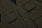 The Utility Vest pulls inspiration from both photgraphers vests and fishing vests. It features four front gussetted pockets as well as two large front zip pockets, a hidden chest zip pocket, and a large back pocket. It's sewn up in a nylon twill fabric with soft hand and beautiful drape. YKK zippers finish out the piece.