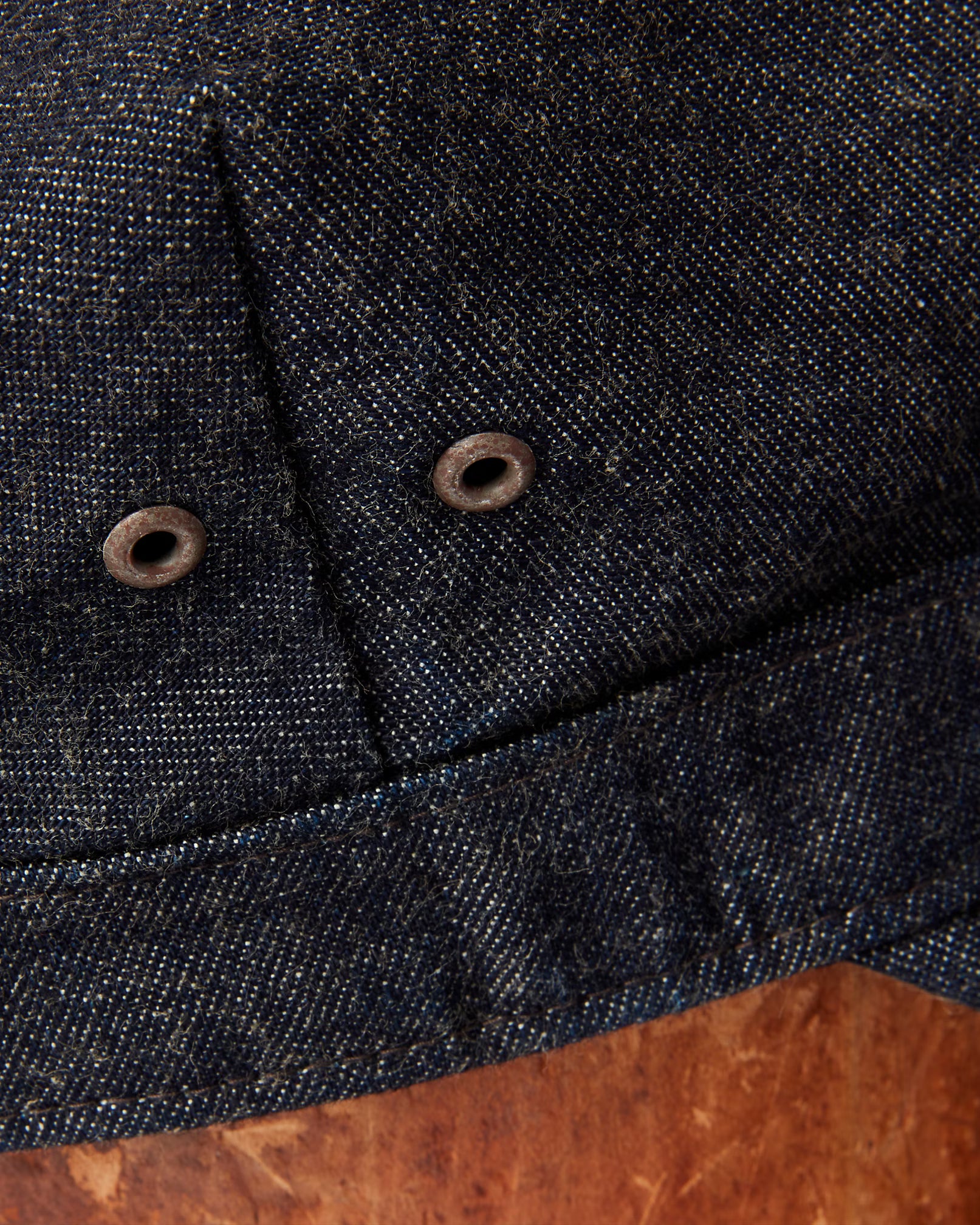 Made from Japanese denim that is dyed with true indigo and rinsed. Darts at the crown.