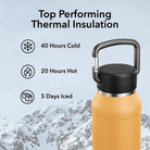 - Top insulation times: 40 hrs cold · 20 hrs hot · 5 days ice