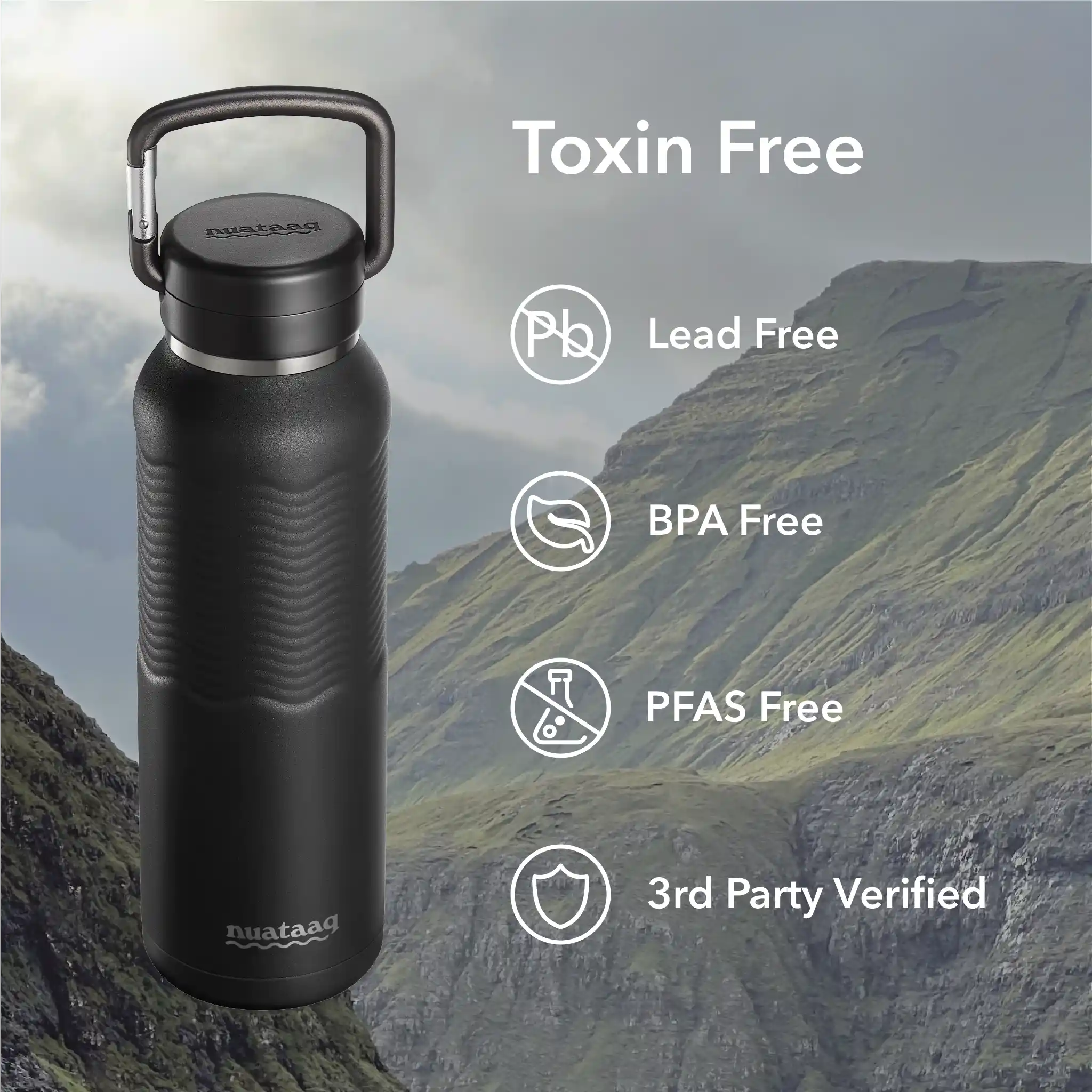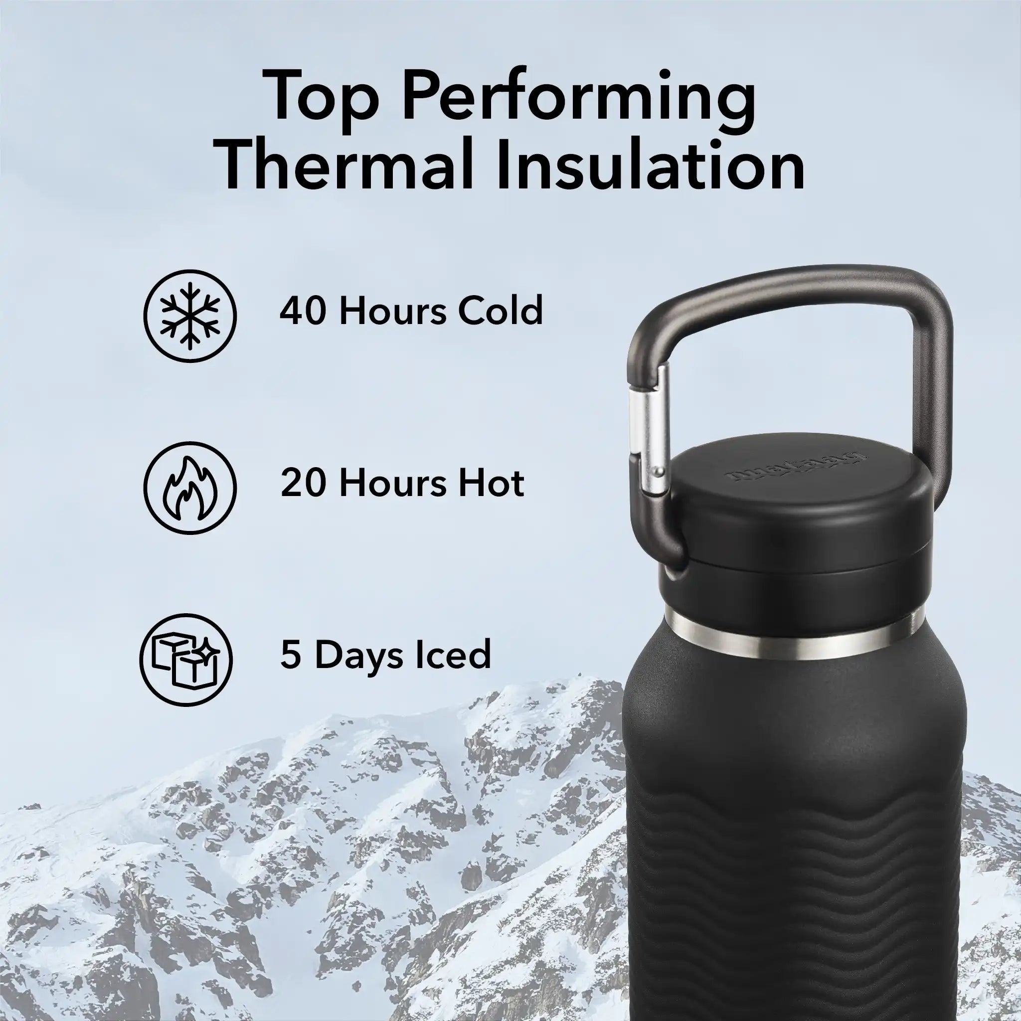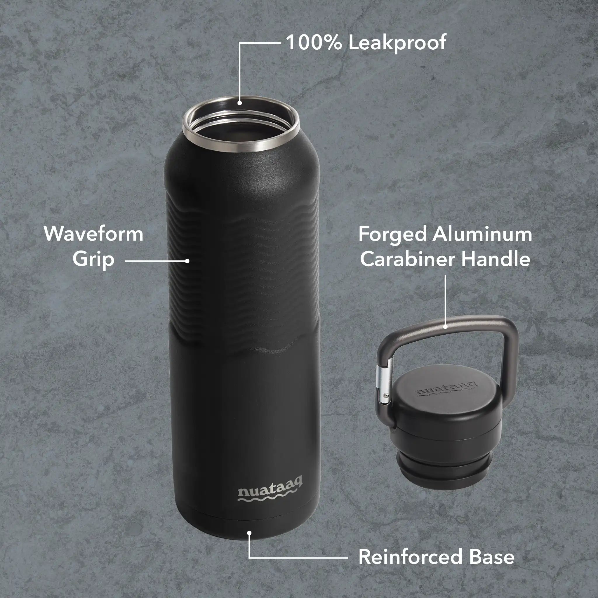 Nuataaq - 34oz 1L Carabiner Water Bottle with Clip Cap - Obsidian