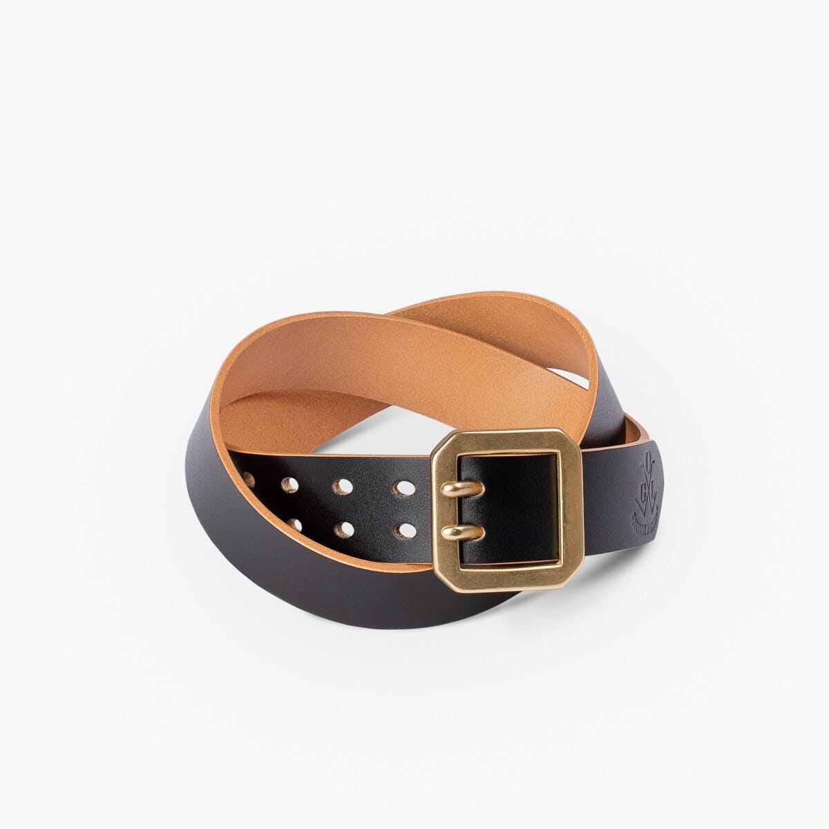 OGL Double Prong Garrison Buckle Leather Belt - Hand-Dyed Black