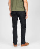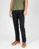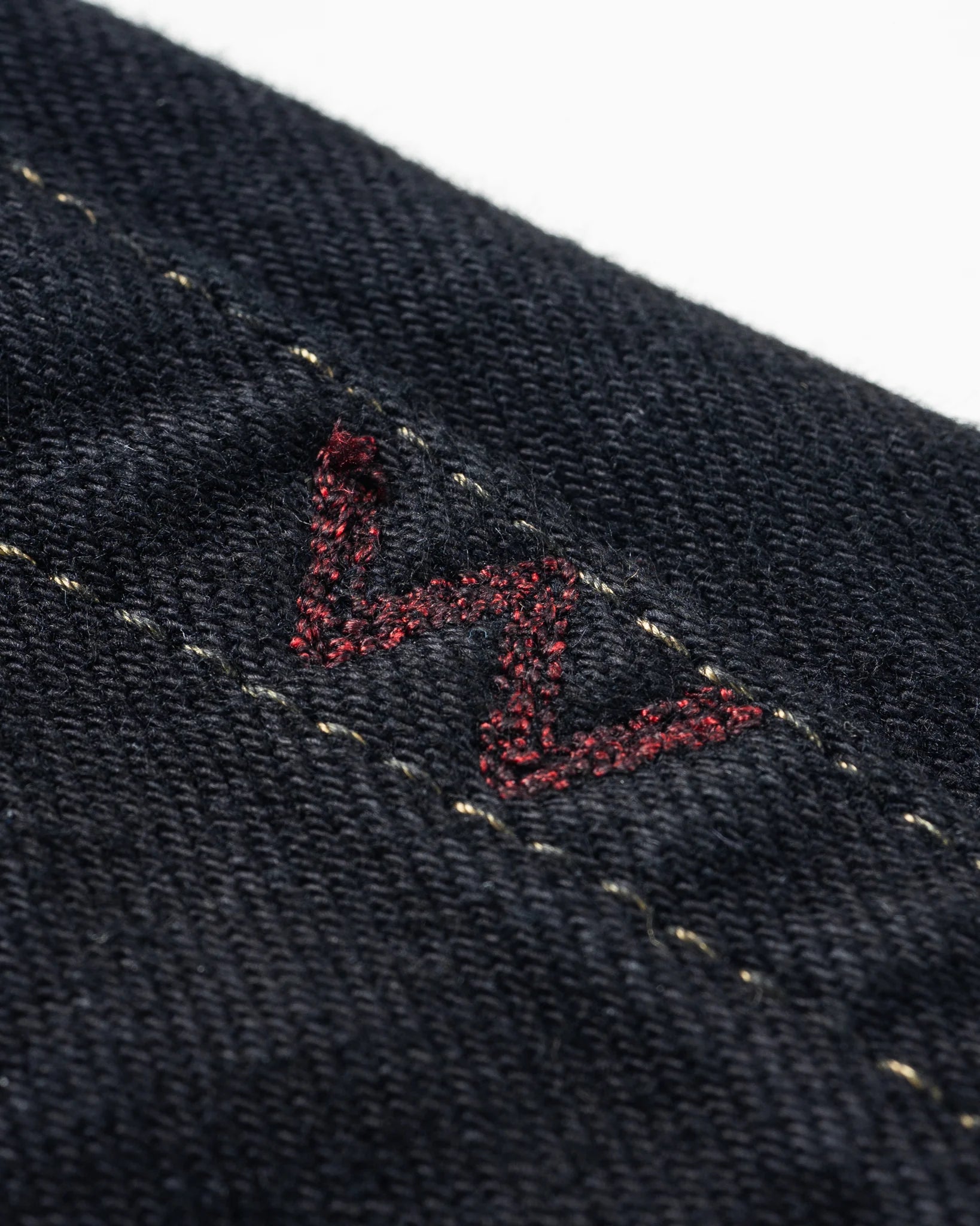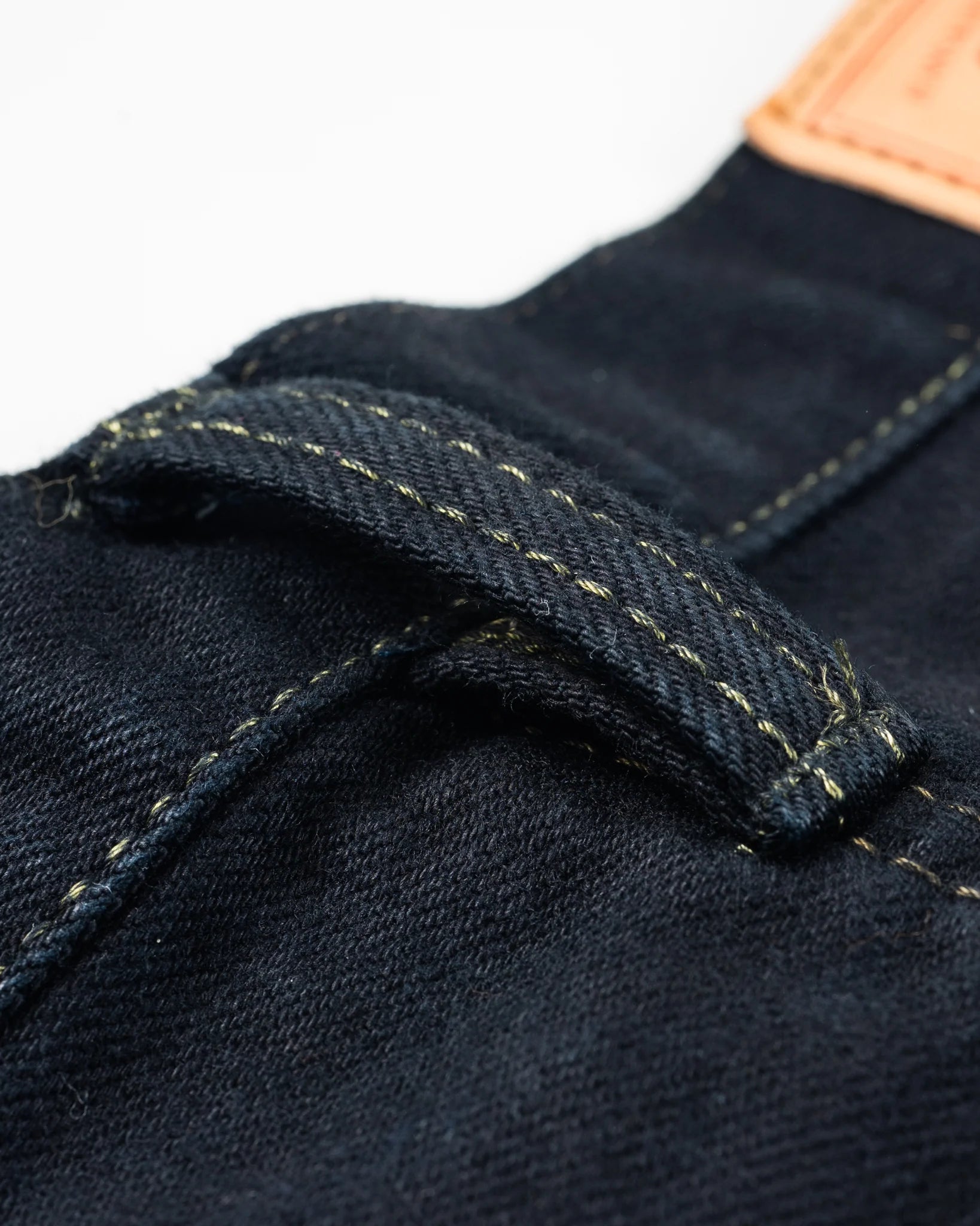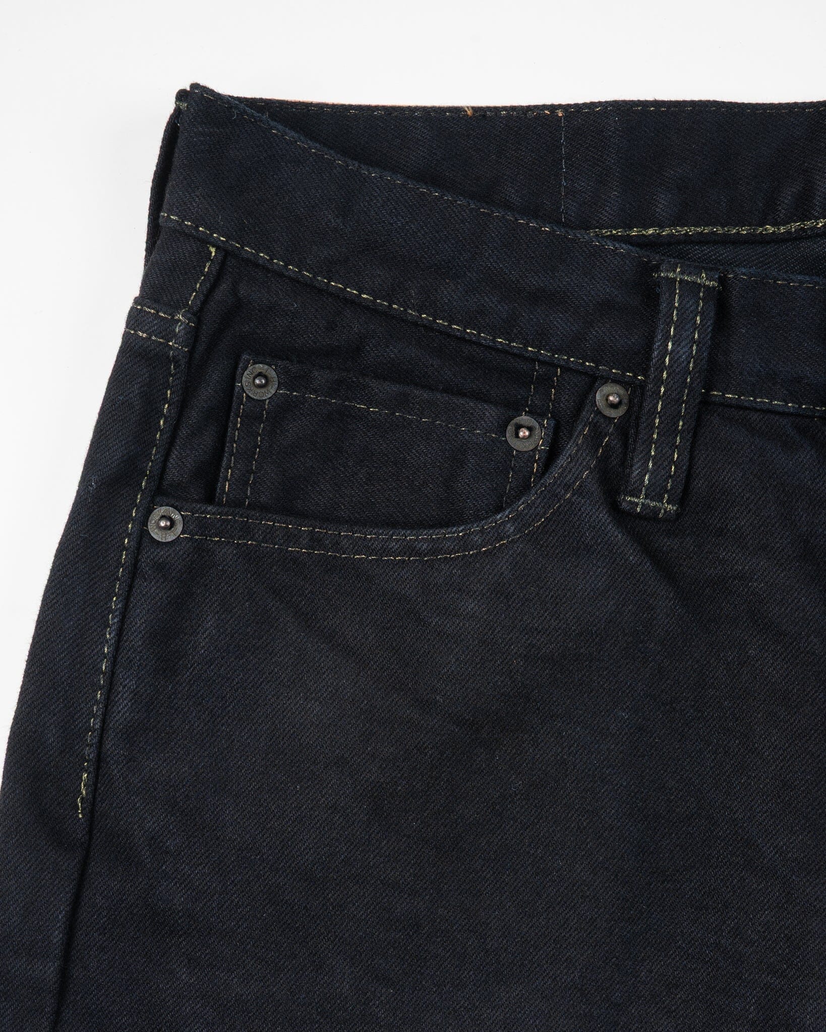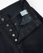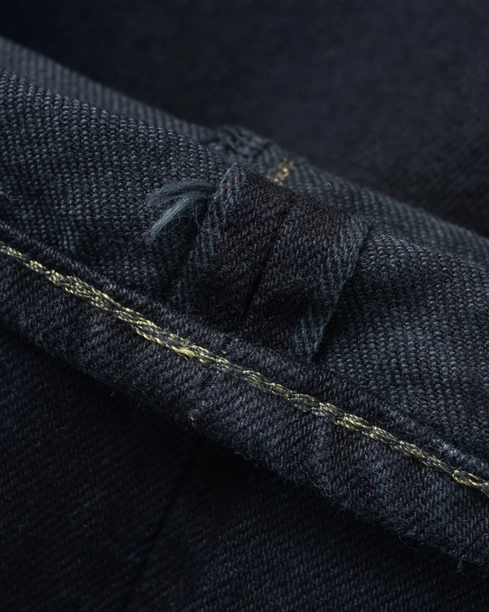 Our relaxed tapered cut jean, made from 14oz indigo selvedge denim. Our 14oz denim (second version) is made with a double twisted weft yarn (the same construction technique as our 21oz selvedge denim). This jean has been overdyed black that will fade with time and wear. At 14oz, this is the "least heavy" Japanese jean denim.