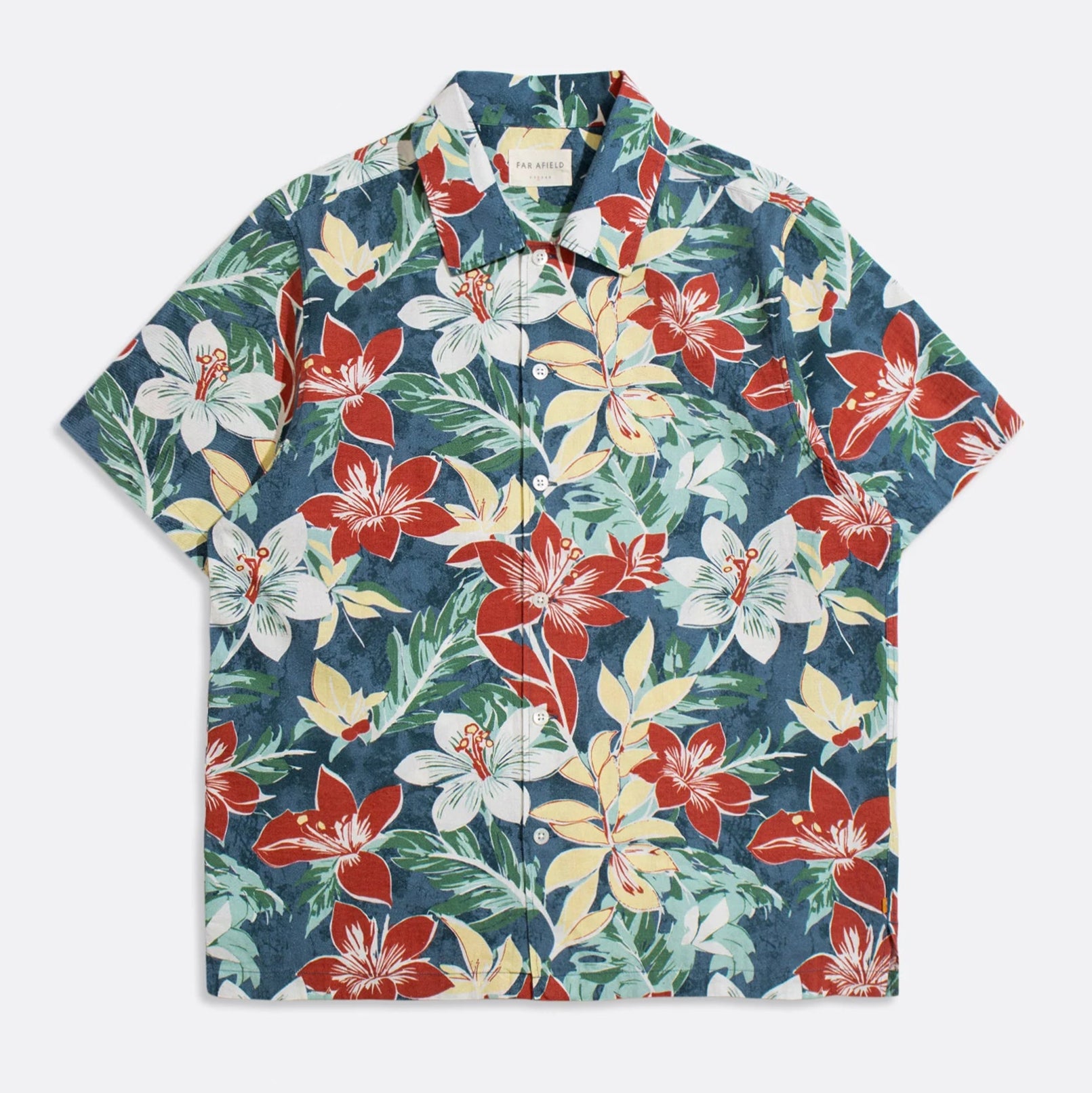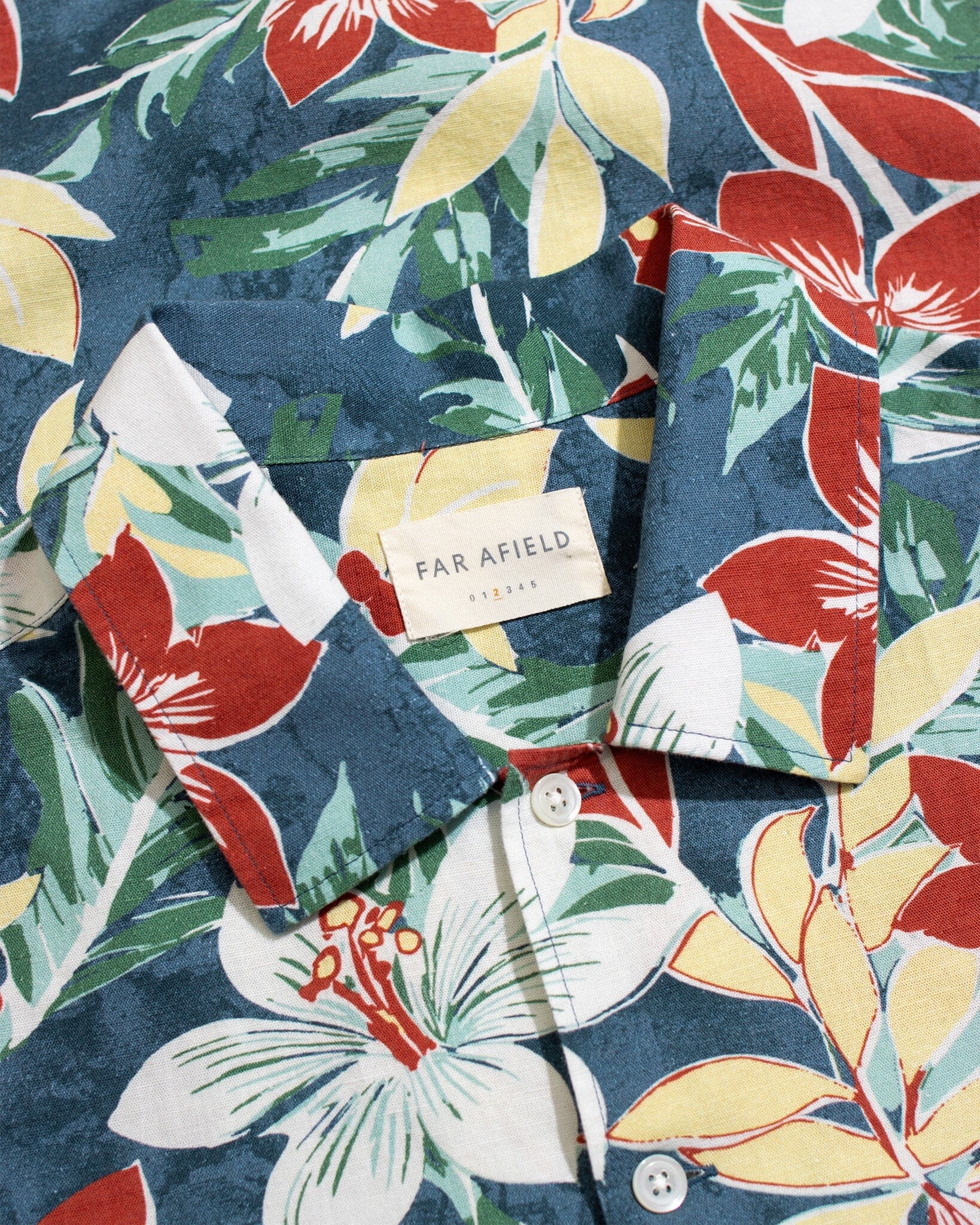 A statement short-sleeve shirt with a slightly cropped, boxy fit. Crafted from a breathable cotton-linen blend, the fabric’s natural texture complements the bold tropical floral print. Cut from a continuous length of printed fabric, each shirt has a unique print placement—no two are exactly alike. This considered approach reduces fabric waste while ensuring every piece is one of a kind.