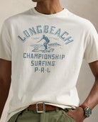 - "Long Beach Championship Surfing P-R-L" and a surfer graphic printed at the center front.