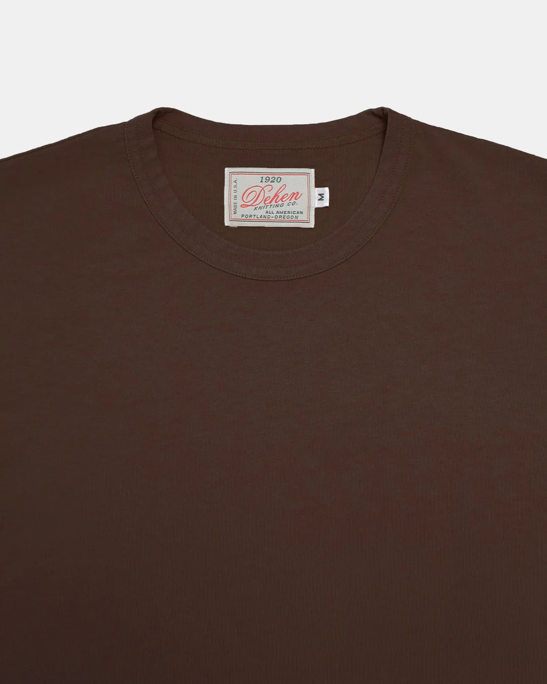 Authentic quality is the hallmark of the Dehen 1920 label, and our Heavy Duty Tee is no exception.  Made from cotton jersey fabric knit, cut and sewn in the U.S.A., this shirt is crafted to be the best and most versatile tee in your closet.  Keeping true to our heritage, we balanced our classic, no-frills approach with an uncompromising attention to detail, producing a garment rugged enough to shoulder a day’s work, but refined enough to accompany your favorite cardigan or sport coat.  Light enough to wear on a hot summer day, but - like all Dehen products - built to stand the test of time.