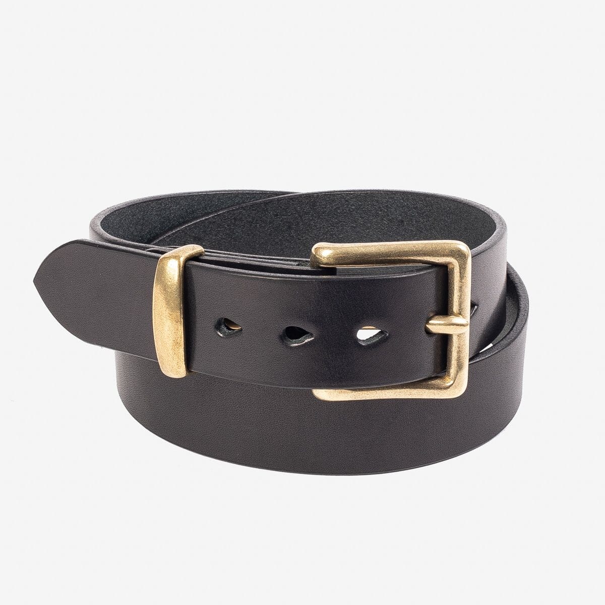 A heavy-duty cowhide belt made using Mishiba crop by Tochigi Leathers, arguably one of the best tanneries in Japan. Complete with a solid brass buckle, these belts are the real deal.