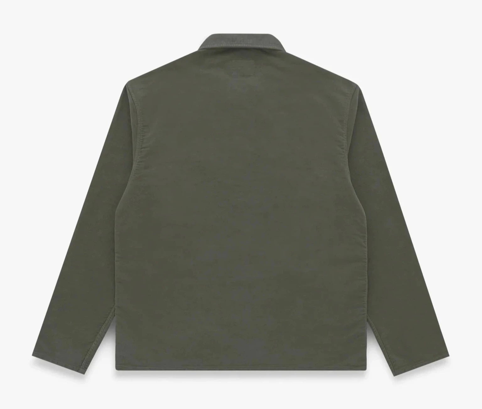 This silhouette leans on the well loved French Chore Coats you typically find in a hue of royal blue. Made in a sturdy moleskin woven by a French mill who has long specialized in the weaving of the French moleskin we have always known in love from our vintage finds. This item is cut with a relaxed fit and wears like a jacket or an overshirt depending on how you wish to layer it.