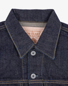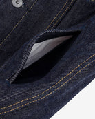 Our classic Type III jacket, modified with a slightly longer than traditional body and with the addition of side handwarmer pockets, made from our 21oz indigo Japanese selvedge denim.