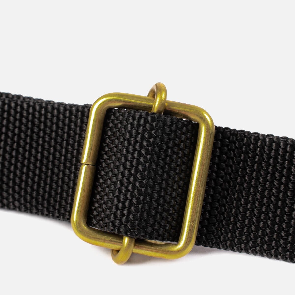 - 1" flat nylon adjustable shoulder strap, with brass rivets where the strap attaches to bag gusset