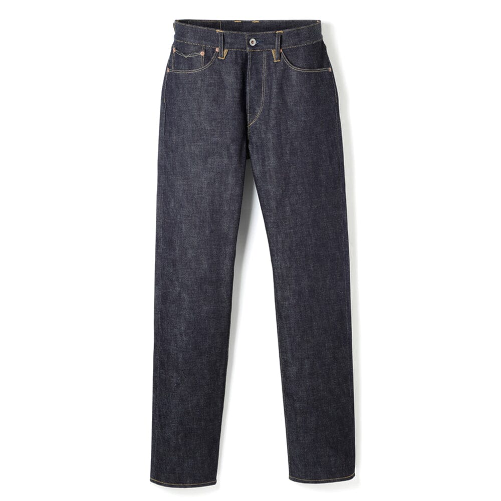 Five-pocket jeans made with double-needle lap seam. Regular tapered leg which comfortably fits around the waist and leg opening and gently tapered from the knees down. The 200 series features decorative stitching on the back pockets at the top, V-shaped belt loops, and the seam allowance on front placket is carefully flat fell stitched without using an over-lock seam.