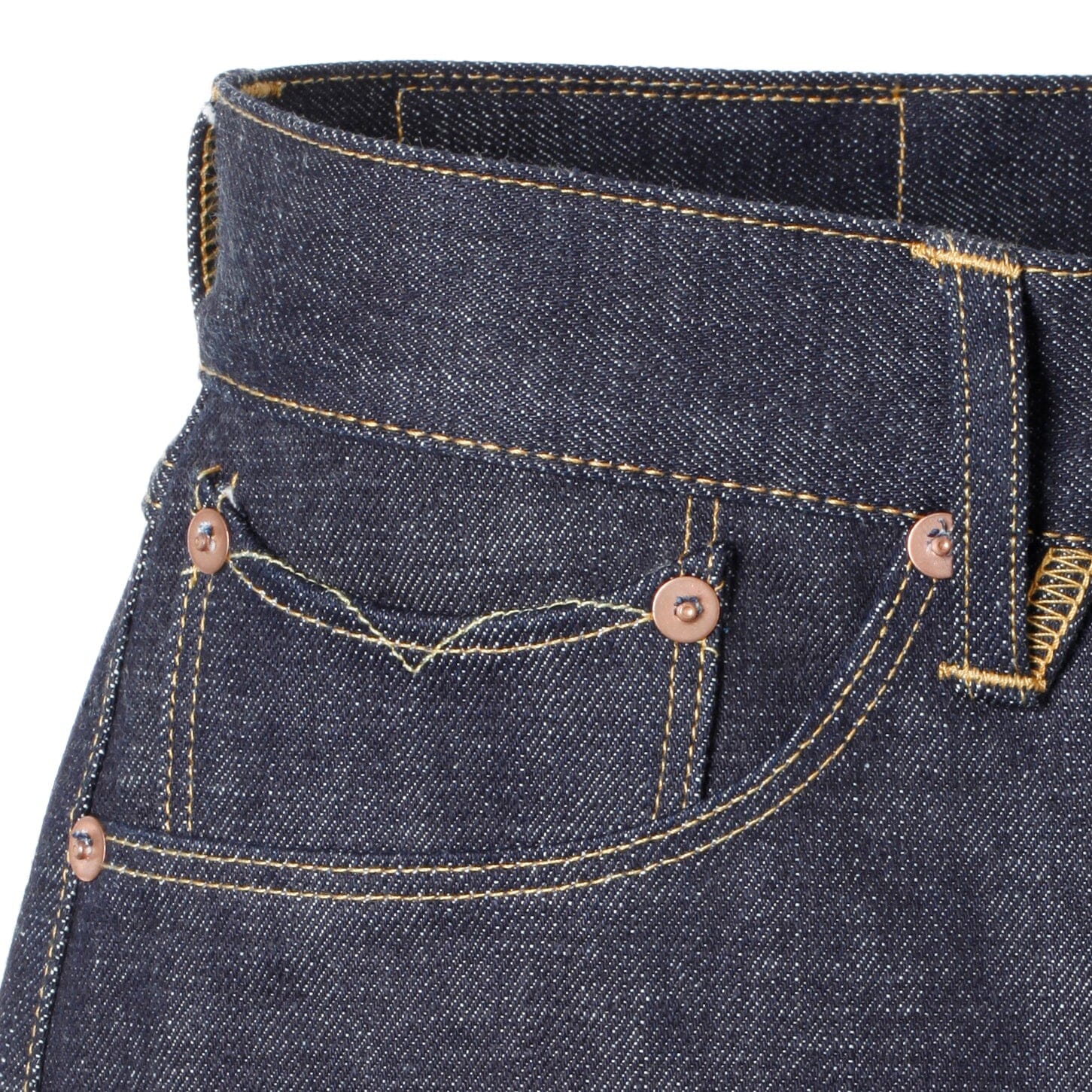 A custom-produced 14oz. selvedge denim made with long staple U.S. cotton giving the fabric a dry texture. Woven on shuttle looms, it gives the fabric the distinctive character very similar to vintage denim. (Made by Nihon Menpu Mills)