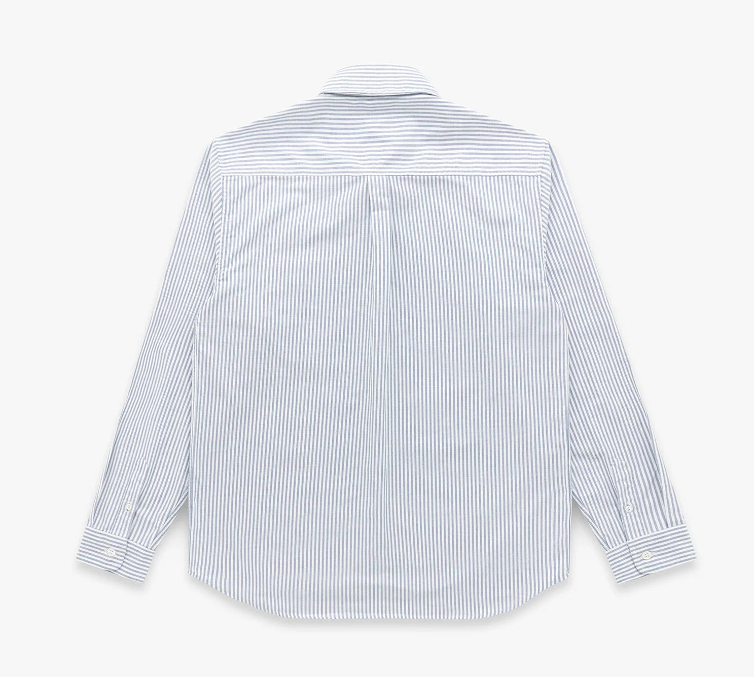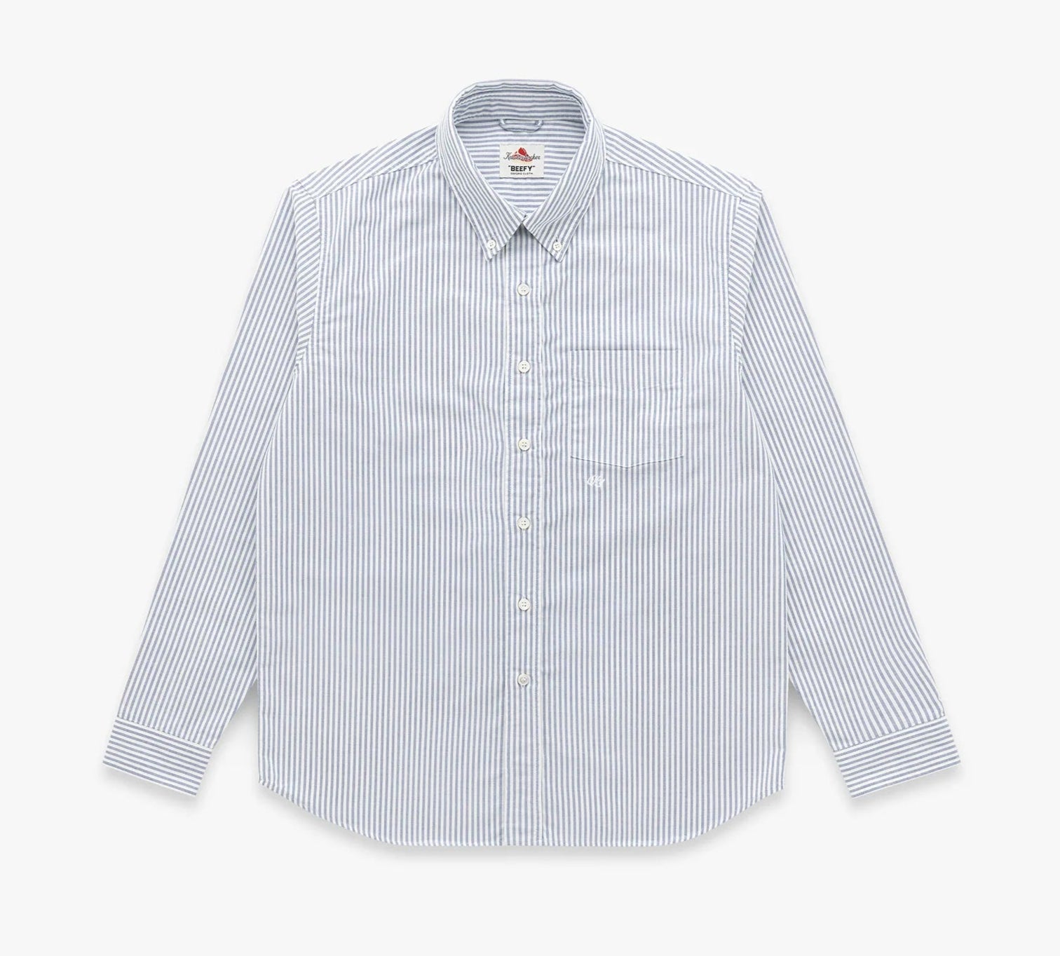 Experience the comfort and durability of our "Beefy" Cotton Oxford shirt in light blue. Made from a custom developed fabric, it features a defined collar roll for a vintage look and mother of pearl buttons. The casual fit allows for versatility, perfect for dressing up or down.