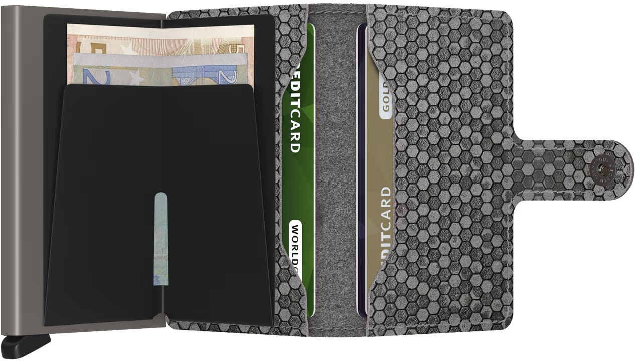 The Miniwallet is the perfect all-rounder: compact and due to its press stud closure it's easy to carry. With the Cardprotector as it's core, it’s also secure and easy to access. In addition to the space in the aluminum body, the interior offers space for a few cards, cash, receipts and business cards.