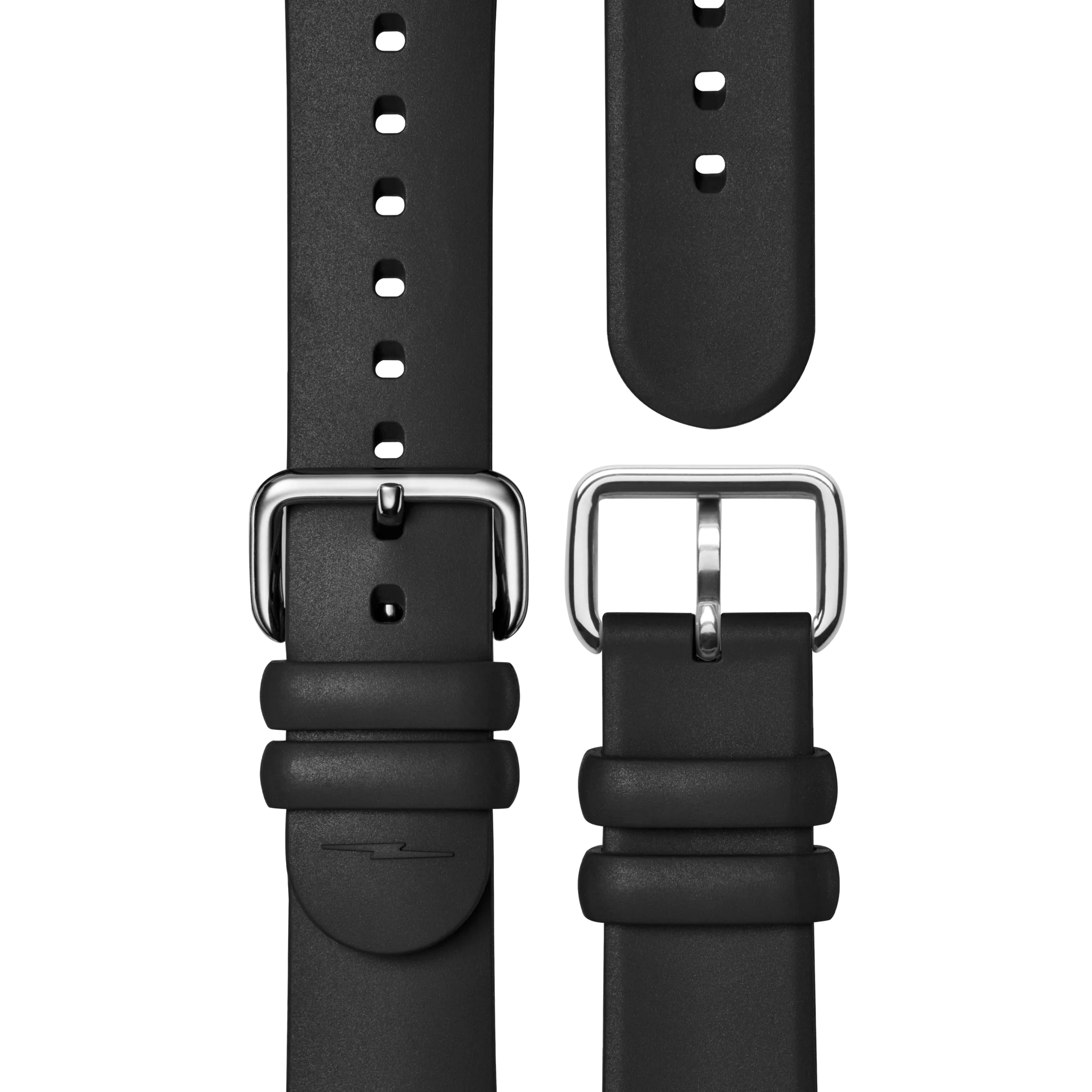 It's brought together by the trademark craft and design of the Detrola: A stainless steel core co-molded with black TR90 resin, wire lugs, a pumpkin crown, and an ultra-comfortable black FKM rubber strap.