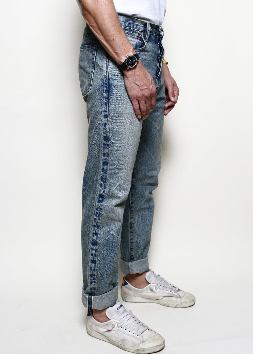 The Strider is a "vintage inspired" fit which will be the highest rise (size 32 at 12" from crotch to the top of the waistband) that RGT have ever offered. The leg has a slight taper from the knee to the leg opening. Overall styling/fit will be a relaxed tapered leg. The Strider is intended to sit above the hips (higher rise vs. Stanton and SK fits). Size the same that you would for the Silveridge. Other details unique to the Strider are the change in placement of the "lasso" stitch which is normally found on the back pockets. That has moved to the coin pocket. and the removal of the pen pocket. Both of these changes are intended to give the Strider its own unique identity within RGT's denim bottoms offering. RGT feels that this vintage inspired look and feel lends itself well to the washes they have developed.