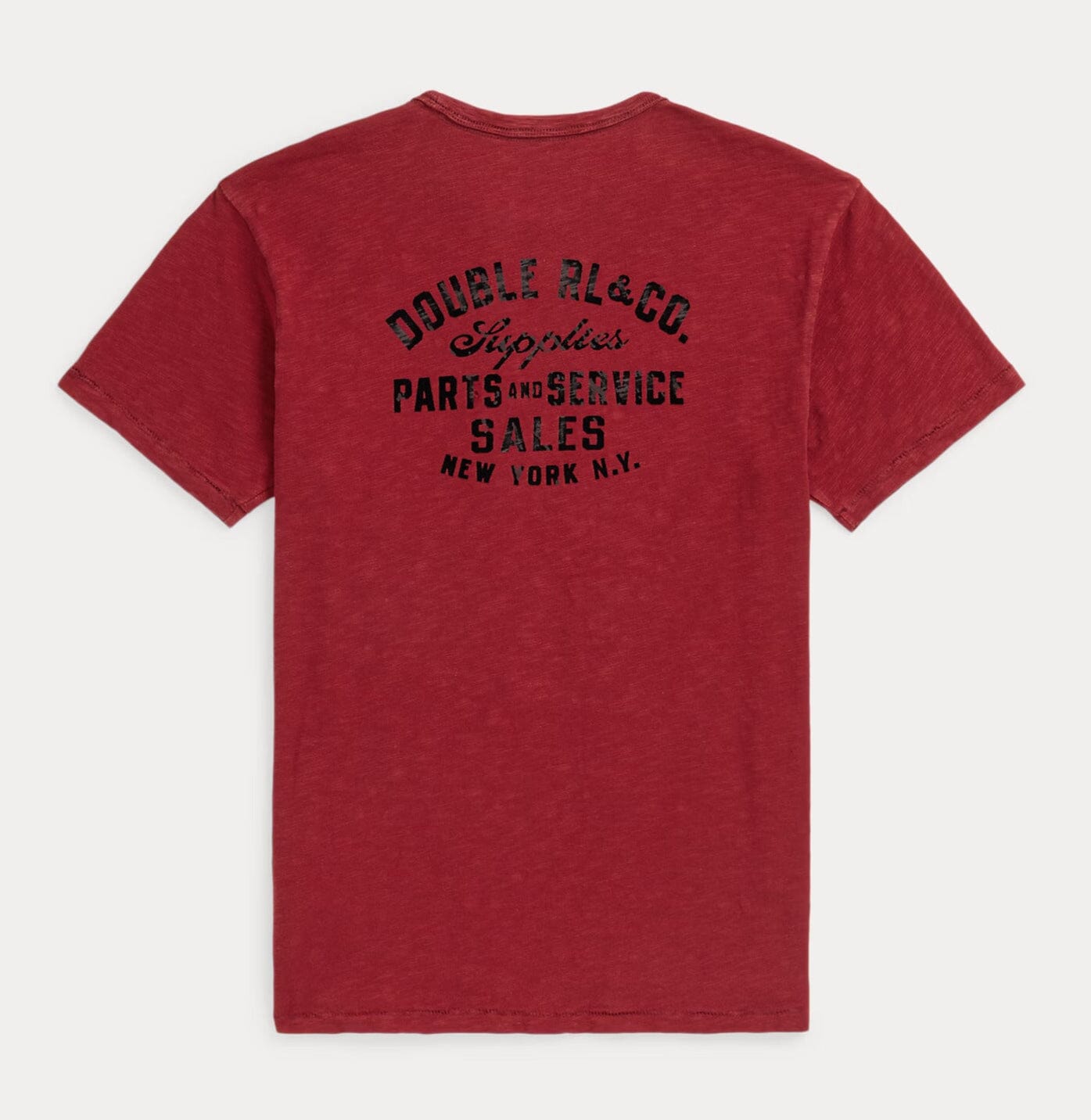 • Flocked “Double RL & Co. Supplies Parts and Service Sales New York N.Y.” print at the center back.