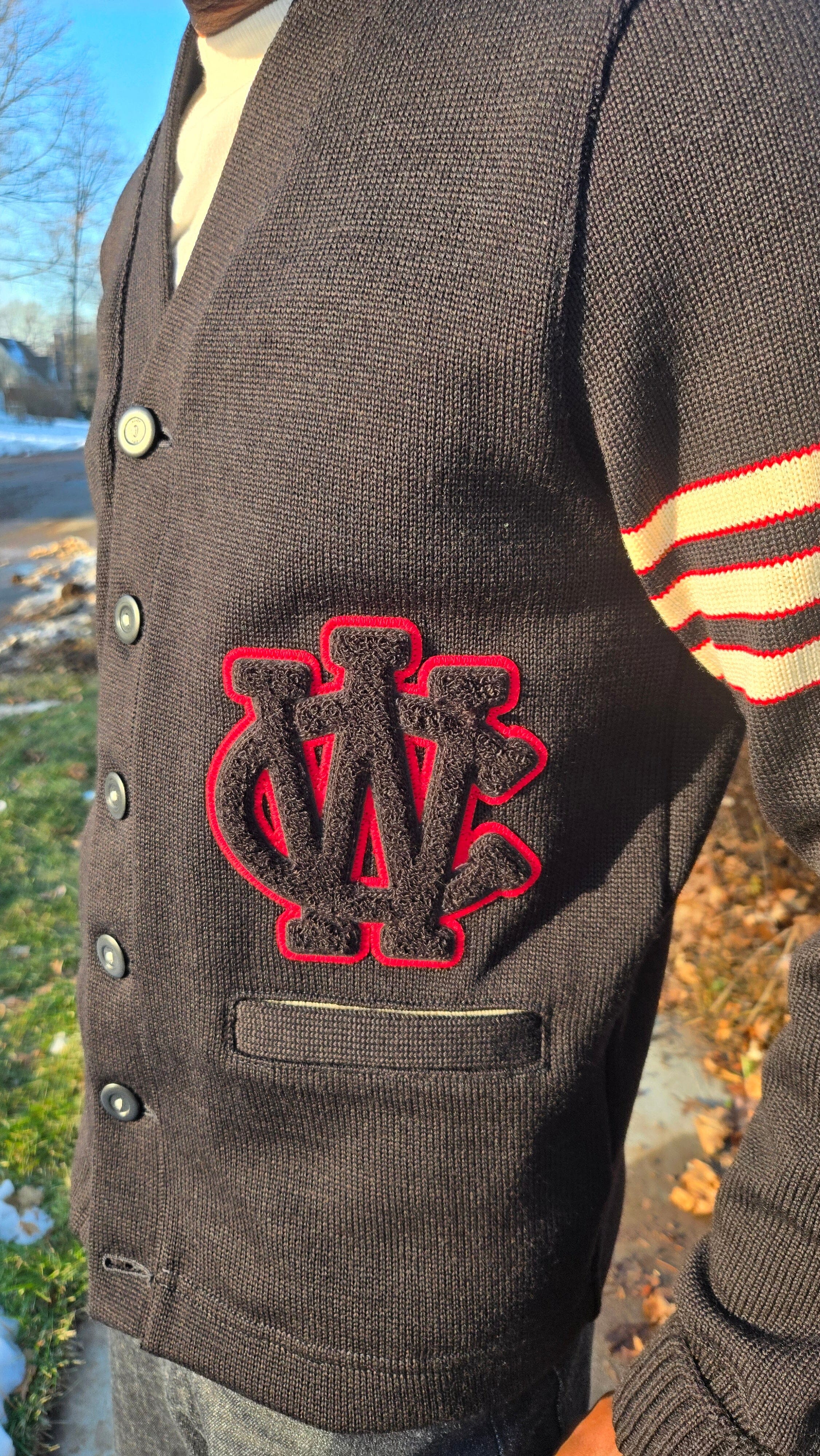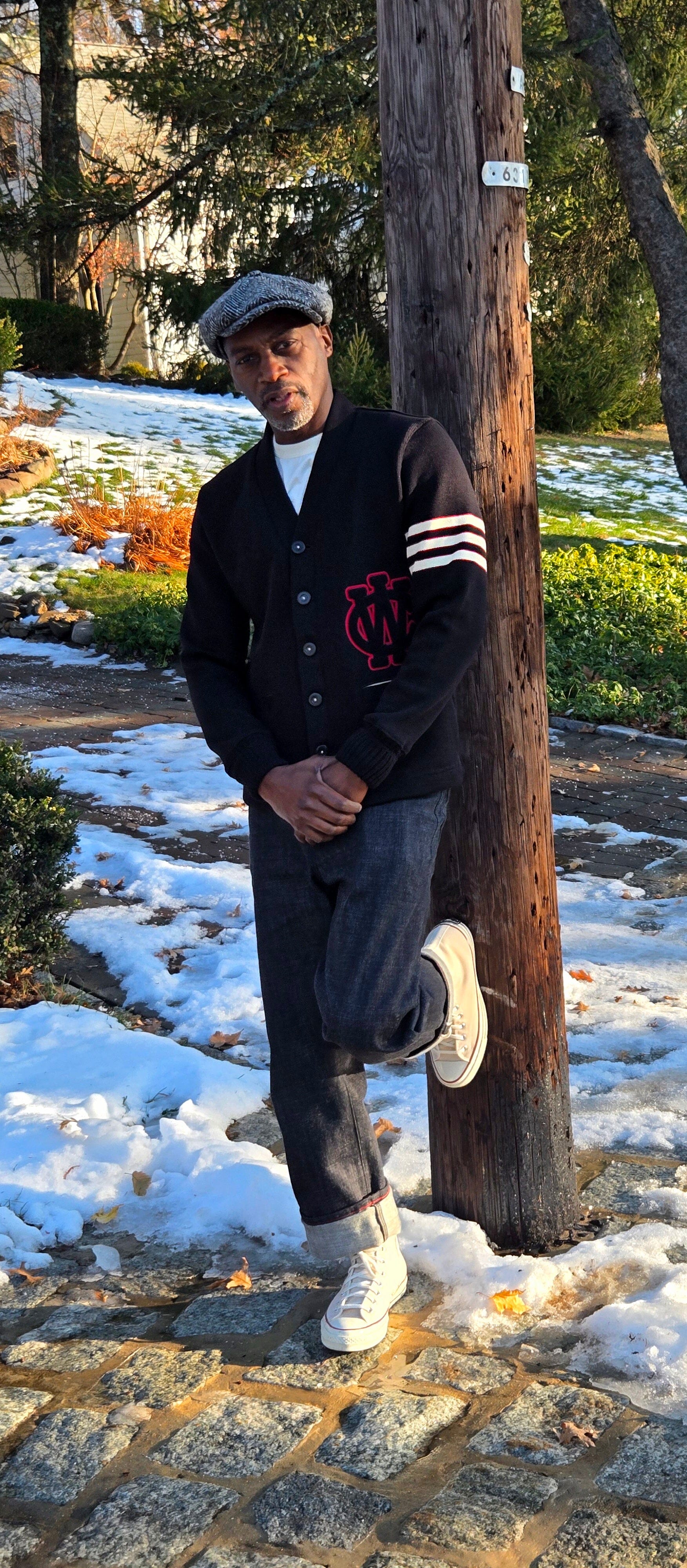 City Workshop X Dehen 1920 - Classic "10yr Anniversary Varsity" Cardigan - Black