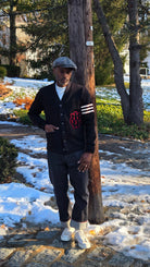 Celebrate a decade of City Workshop with this exclusive collaboration varsity cardigan from heritage knitwear maker Dehen 1920. Crafted with meticulous attention to detail, this black cardigan features the timeless construction that defines Dehen's 100-year legacy—ribbed knit collar, cuffs, and hem paired with a structured fit. The commemorative design honors ten years of curating quality menswear essentials. A versatile layering piece that transitions seamlessly from casual to smart-casual, this limited-edition cardigan represents the intersection of American craftsmanship and contemporary style.