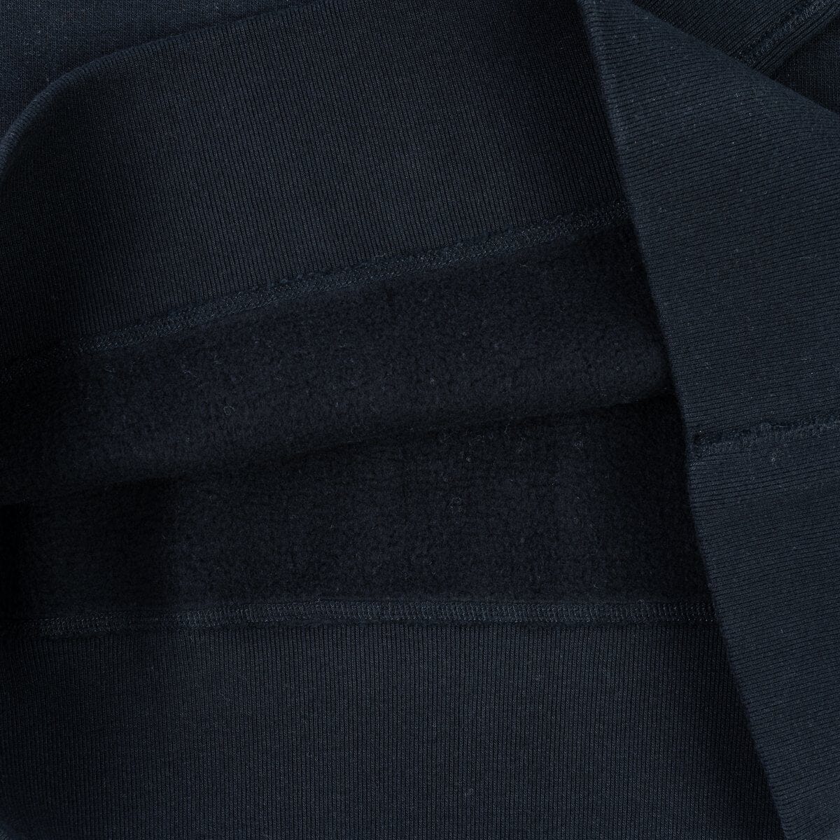 The ultra heavy loopwheel fleece we use for all of our sweatshirts is woven in Wakayama and weighs in at a massive 14oz. This crew neck sweatshirt is super windproof and is constructed using four needle Union Special flat stitched seams. Finished with a ribbed collar, cuffs and hem.