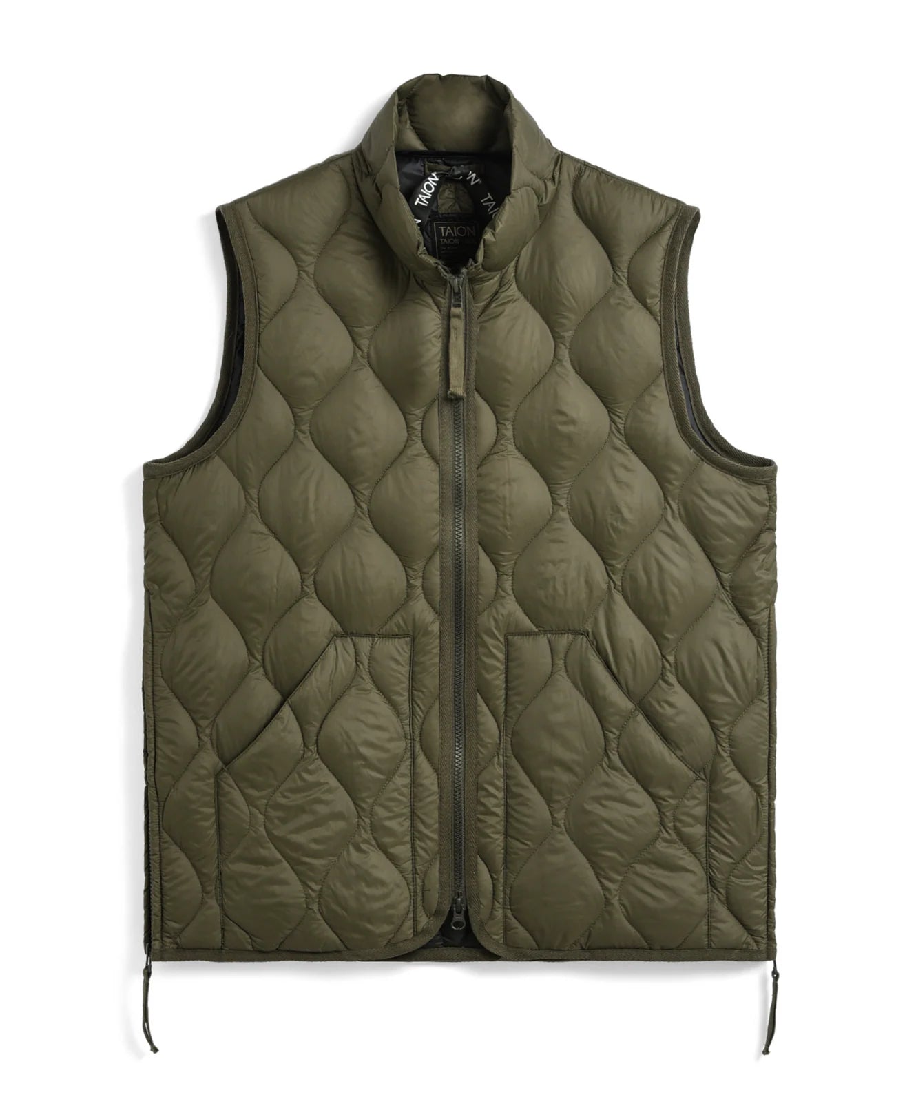 TAION - Military High Neck W-Zip Down Vest - D. Olive