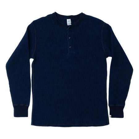 UES - BIG WAFFLE Henley Neck T-shirt Indigo