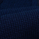 We designed a waffle T -shirt using yarn-dyed indigo yarn. You can enjoy a different color fading than product dyeing. Rope-dyed yarn does not dye all the way to the core, so the white of the incomplete core appears due to fading and wear from wearing, creating a beautiful gradation. Yarn-dyed indigo yarn is often avoided for production because it stains knitting machines, and it is a rare fabric that can only be produced in a limited number of factories in Japan. A special four-needle sewing machine is used for sewing to prevent the sewn parts from becoming thick. The fabric is about 12 ounces, and while it has a moderate thickness, it is soft and comfortable to wear.