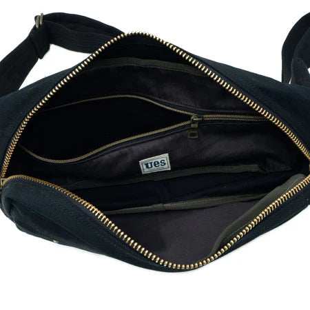 A body bag in sulfur dye black, which is the theme color of this season. The shape has been made in the past, but we have made some updates such as changing the front zipper. The bottom of the bag and the belt are made of oxford. There is also a pocket inside, so you can store small items separately. It is large enough to store a thin shirt.
