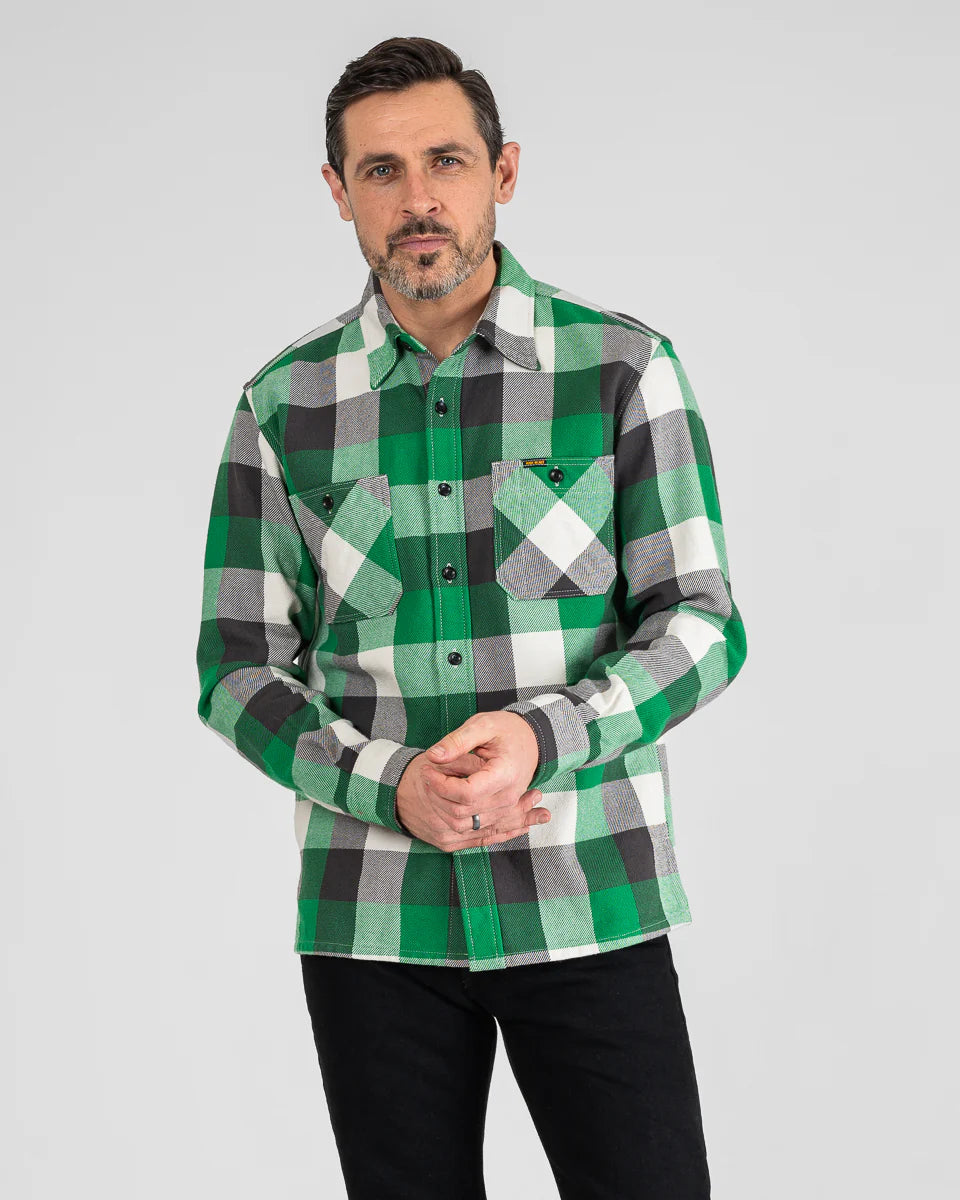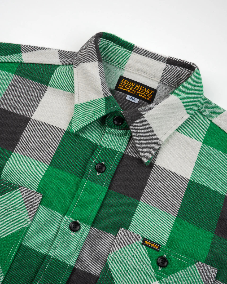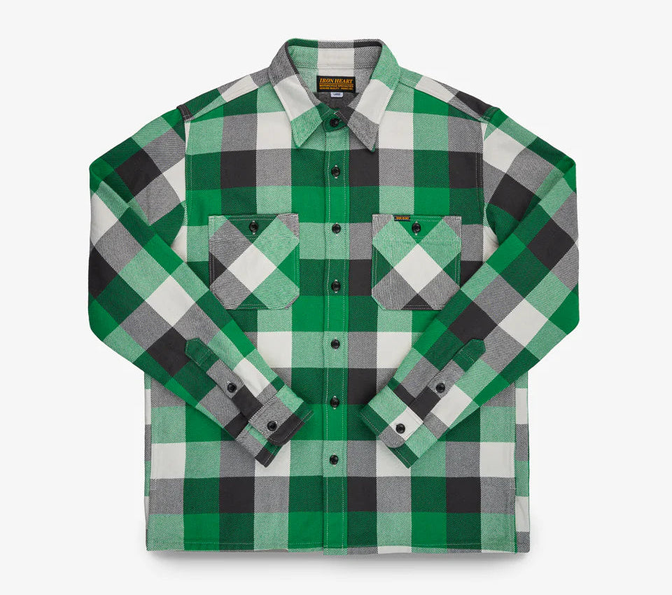 Iron Heart - IHSH-428-GRN - Ultra Heavy Flannel Vintage Check Work Overshirt - Green