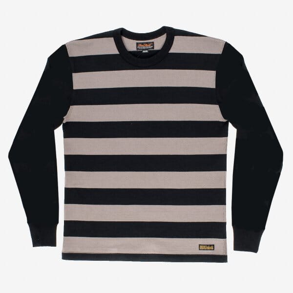 Iron Heart - IHTB-05-GRY - 11oz Cotton Knit Long-Sleeved Sweater - Striped Body With Black Arms
