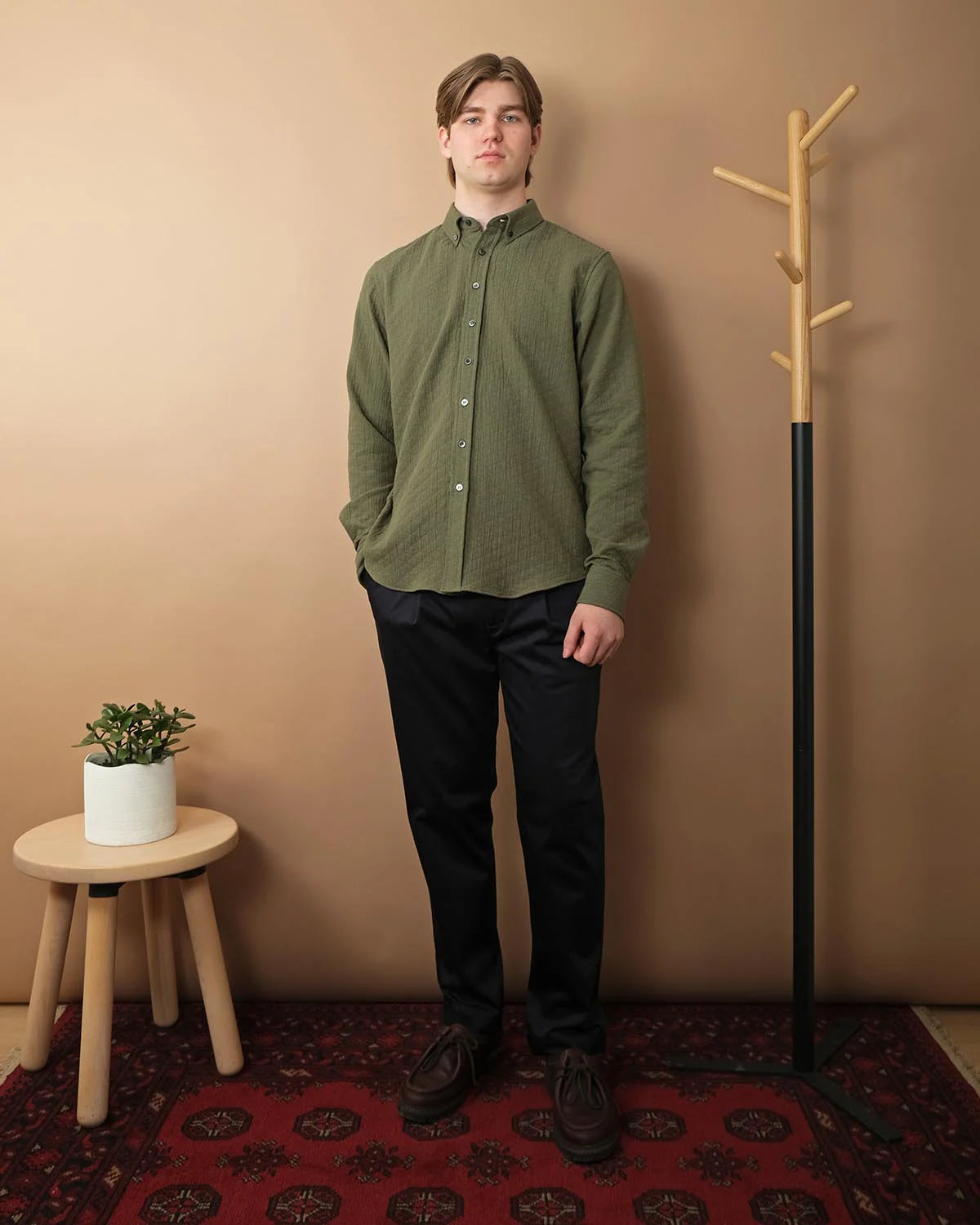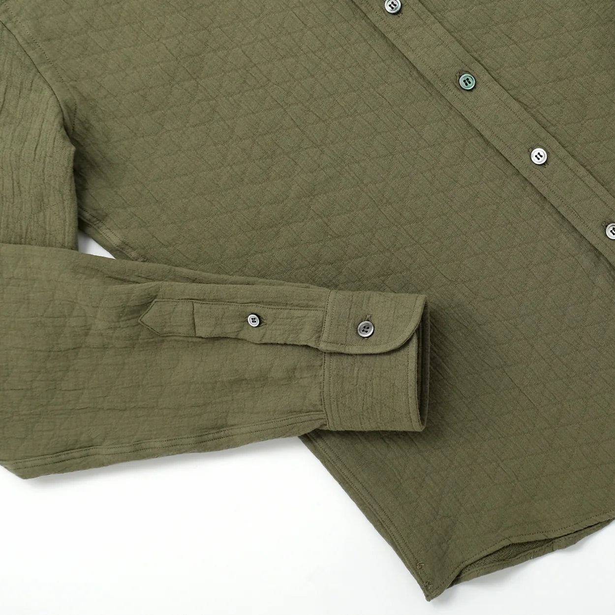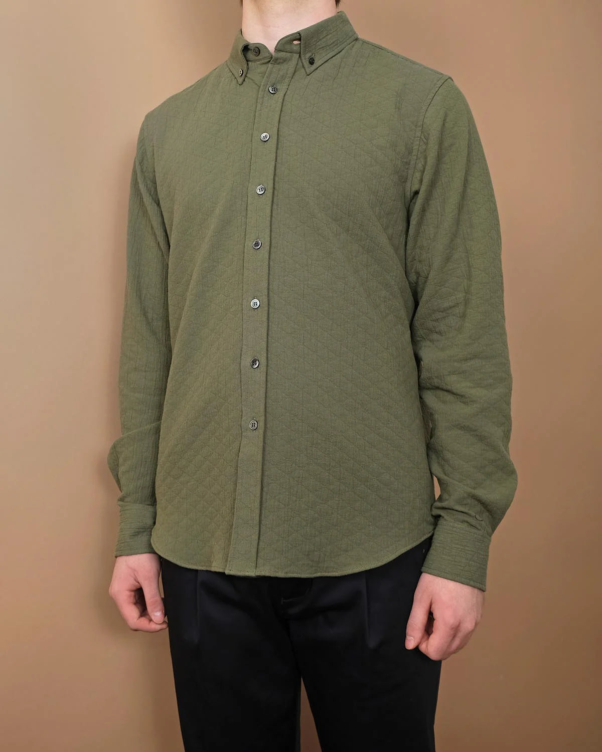 Timeless and easygoing, the Olive Quilted L/S Classic Shirt is made from a soft quilted cotton fabric from Spain. Designed with a relaxed fit, button-down collar, and finished with grey mother of pearl buttons, the shirt offers a laid-back yet polished look.