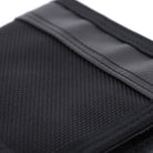 The main material is varistor nylon made in Japan woven with 66 nylon thread, which is also used for car airbags and bulletproof vests, and has excellent heat resistance, abrasion resistance, and tear strength. Some parts are made of highly water-resistant tarpaulin fabric, which is used as an industrial material. Although it is a one-tone black color, it has a stylish design with contrast by combining fabrics with different textures.
