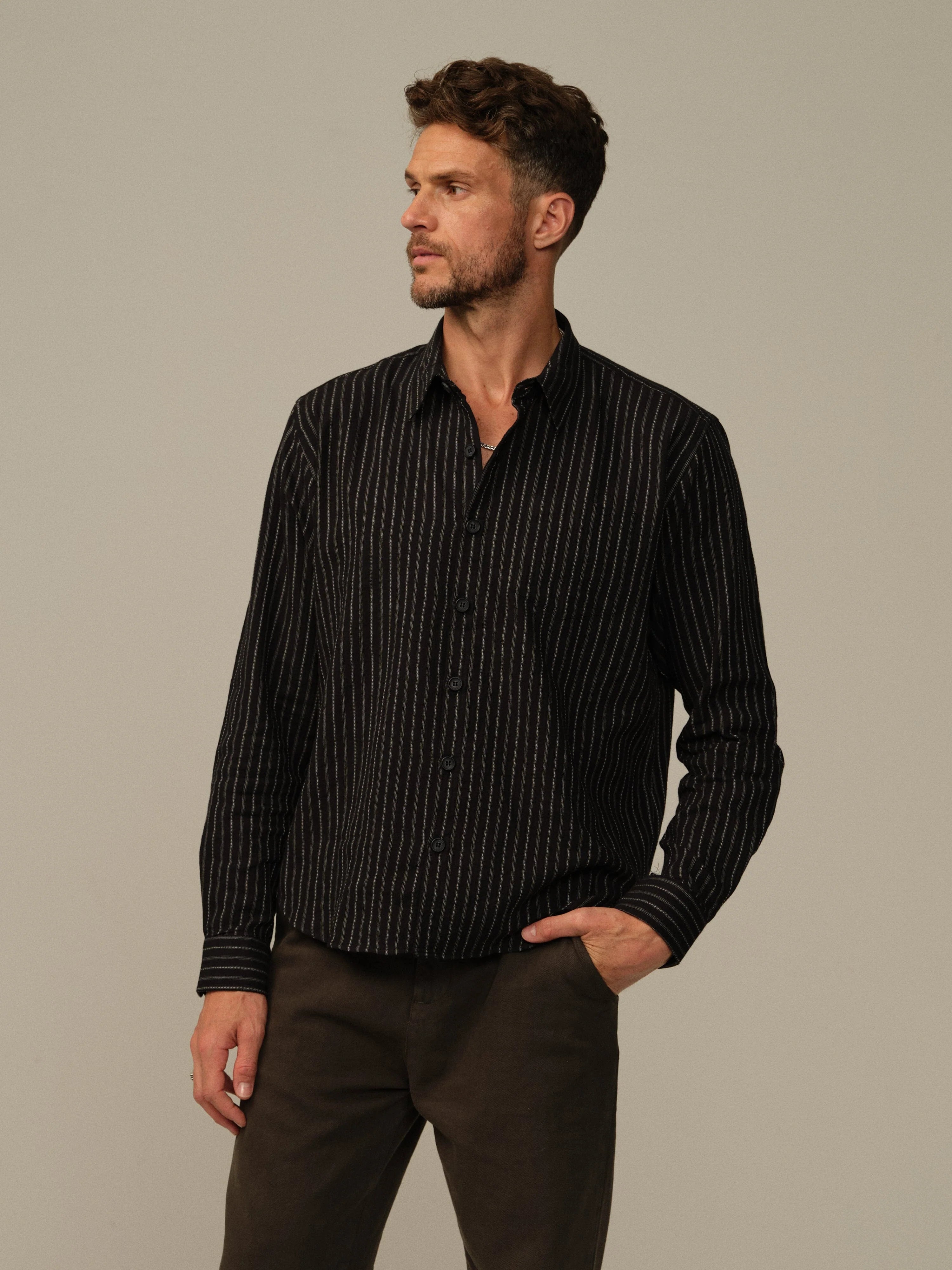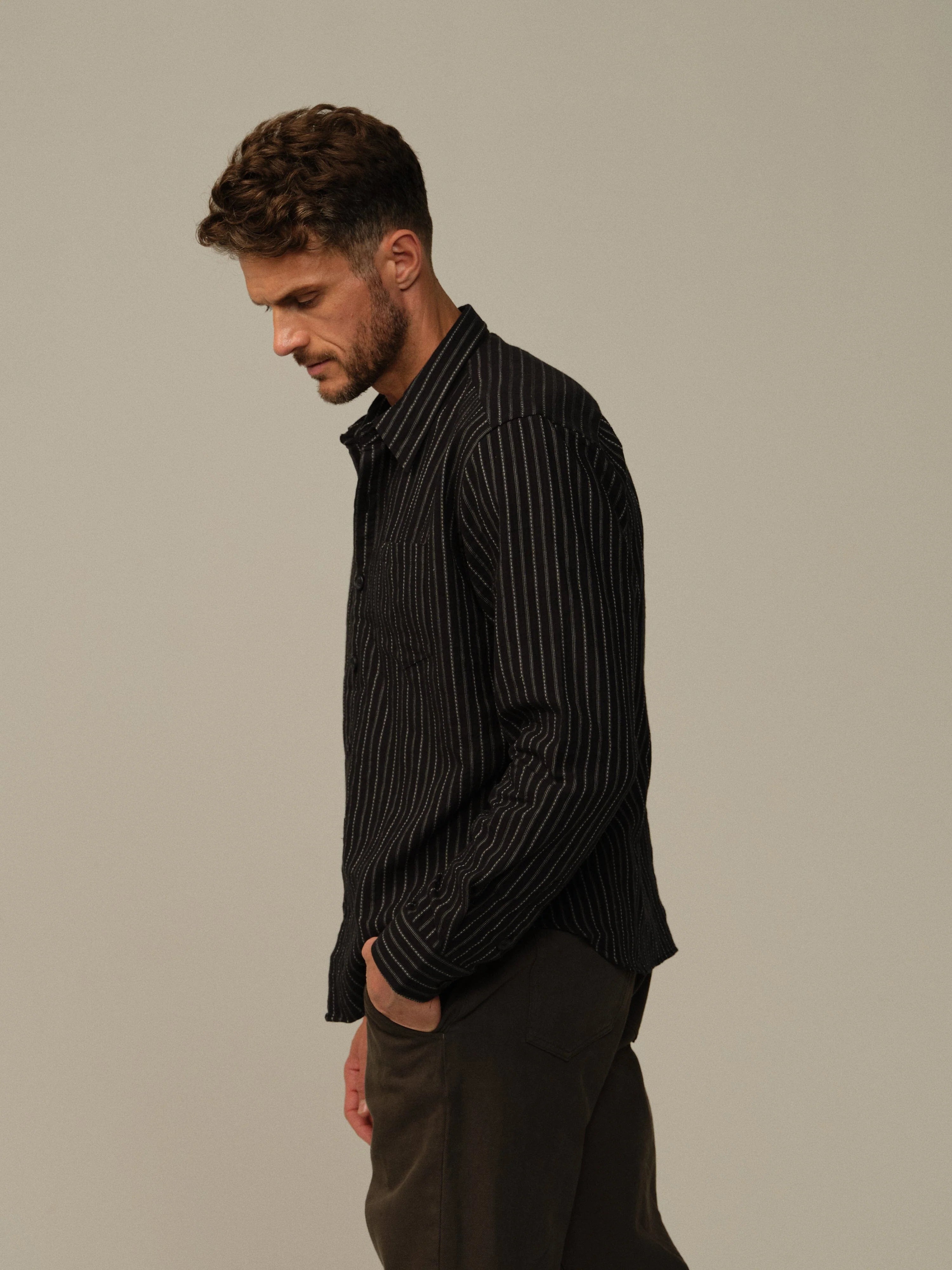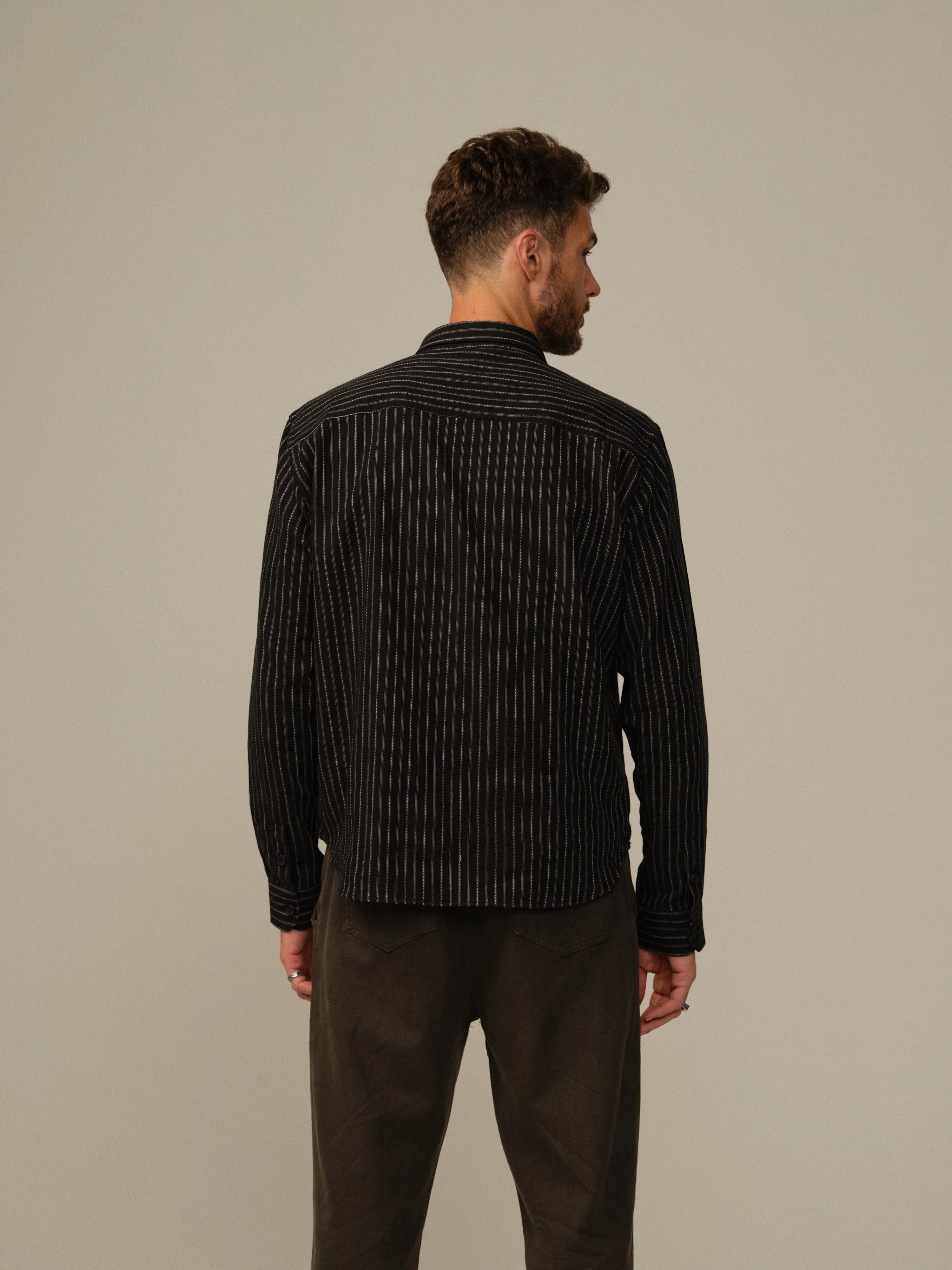 Road To Nowhere - Accord Japanese Organic Cotton Shirt in Black Stripe
